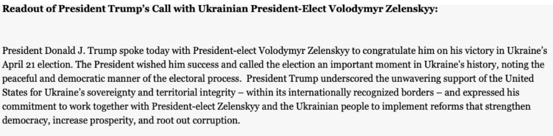 ... as the second impeachment hearing is about to gavel in, the White House released the first convo between trump and Zelensky. Here it is