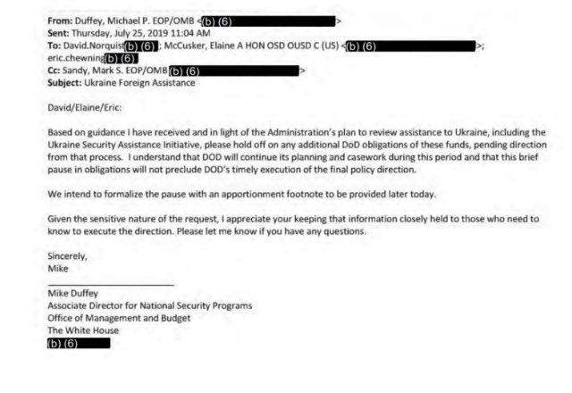 Now do Trump, having the OMB contact the pentagon to freeze the release of the Ukraine military aid, less than 2 hours after his perfect call.pic.twitter.com/kwzXKjURda