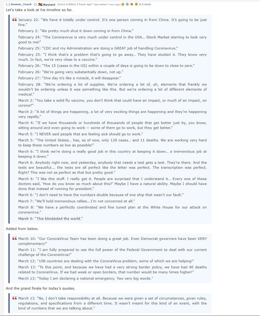 Where's the timeline of actions for the Dems to swallow? They are all in a tizzy about the days narrative and I can find nothing to red pill them with. Thanks.
