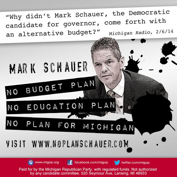 RT @MIGOP Where is Mark Schauer's plan for Michigan? http://www.noplanschauer.com #NoPlanSchauerpic.twitter.com/ZVVmKSJmr0