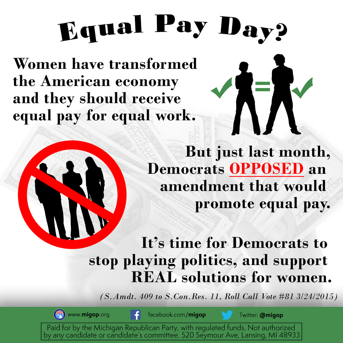 It's disappointing that Democrats use #EqualPayDay as a cynical political tool. https://www.gop.com/national-republican-groups-joint-statement-on-equal-pay-day/ …pic.twitter.com/2a2wRbx1BD