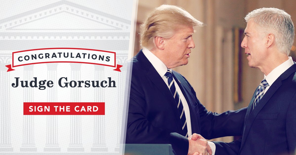 Congratulations Judge Gorsuch! Relieved & grateful you're on the