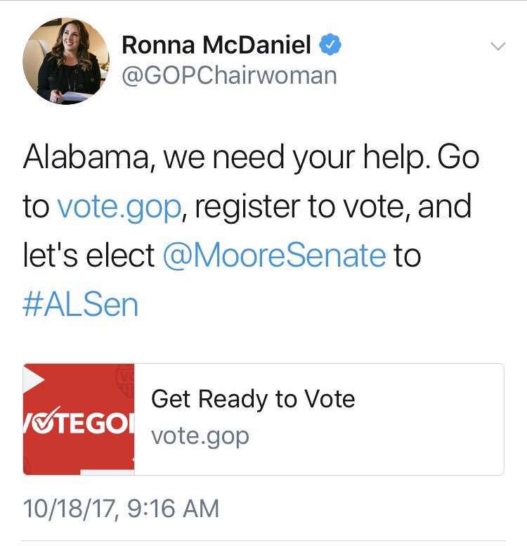 Does your enthusiastic endorsement of Roy Moore still stand, Ronna?pic.twitter.com/Q2SOVJNxt4
