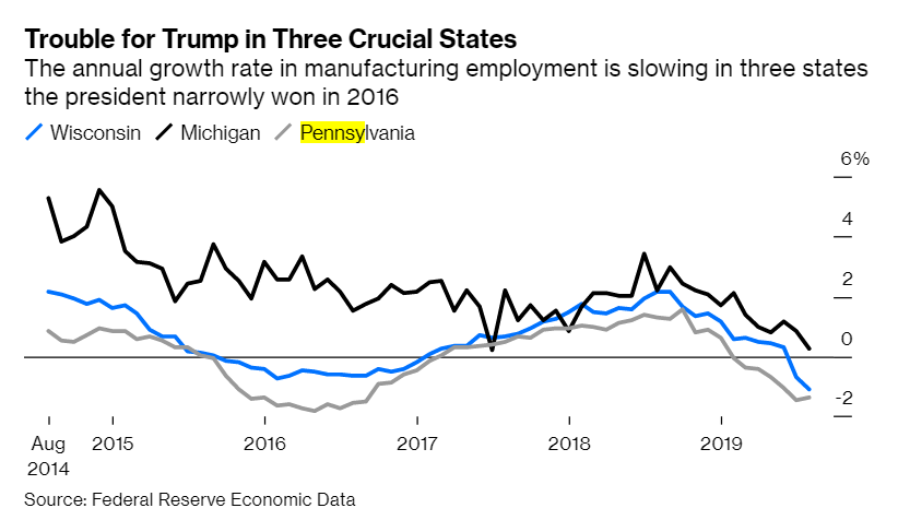 , we are seeing a manufacturing renaissance." But the manufacturing index just released was at a 10yr low. It only took DJT 3 yrs to destroy the Obama 9yr bull market.