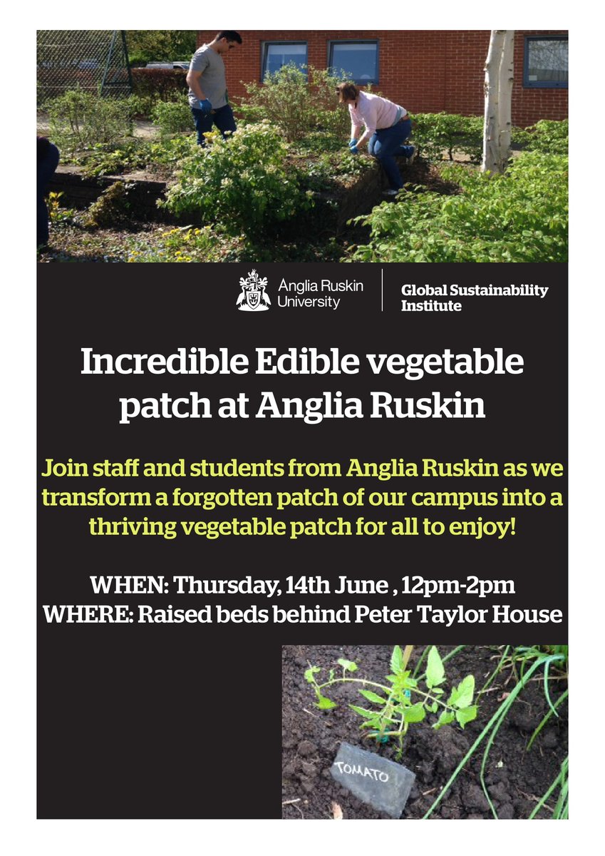 Did you know that our Cambridge campus is home to an edible garden for all to enjoy? We'll be heading over tomorrow to do some more digging and general upkeep - all are welcome to join. More details in the link and attached poster - https://bit.ly/2Jx4E8l @ARUenvironment pic.twitter.com/WXUTLlY55p