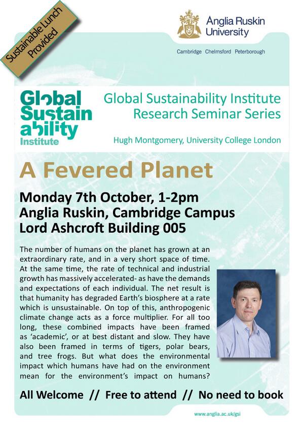 07/10/13 @GSI_ARU #research #seminar with Hugh Montgomery from #ULC at @AngliaRuskin #Cambridge #sustainabilitypic.twitter.com/clIetKUUse