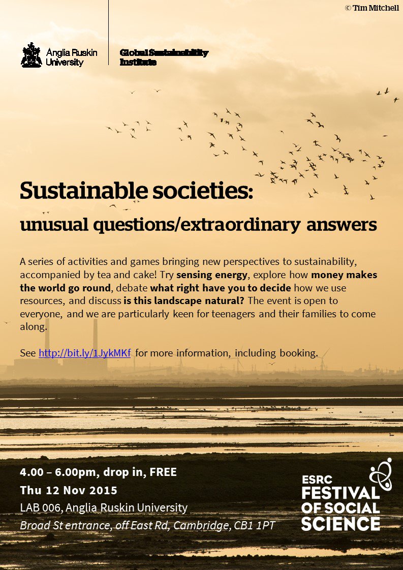 Evening event next week "Sustainable societies:unusual questions/extraordinary answers See http://bit.ly/1JykMKffor pic.twitter.com/PnKIFLATfN
