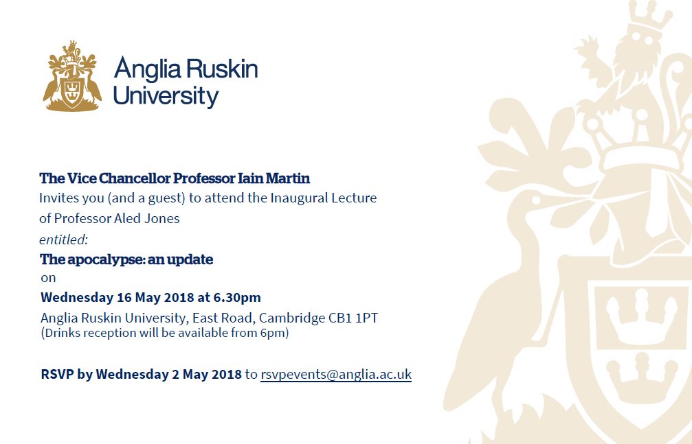 Dr Apocalypse himself, @aledjones_gsi, is giving his inaugural professorial lecture. We wouldn't miss it for the (end of the) world. 16 May 2018 in Cambridge.https://twitter.com/aledjones_gsi/status/978918846525595649 …