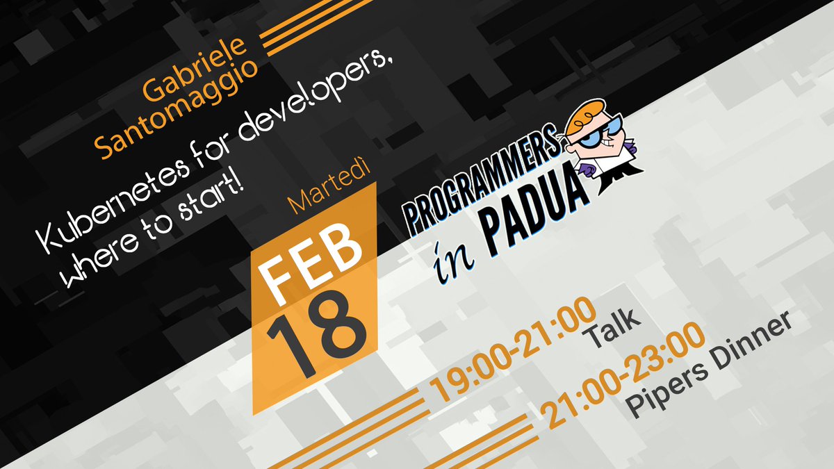 #K#kubernetes con@GSantomaggio ! Le iscrizioni aprono il 1 febbraio alle 12.00, il tutto#FCFS. Sarà attiva la lista di attesa alla fine dei posti. https://buff.ly/2GCUfE1 Gli eventi saranno ospitati da@cofare_cowopic.twitter.com/1GQHaVt3t2