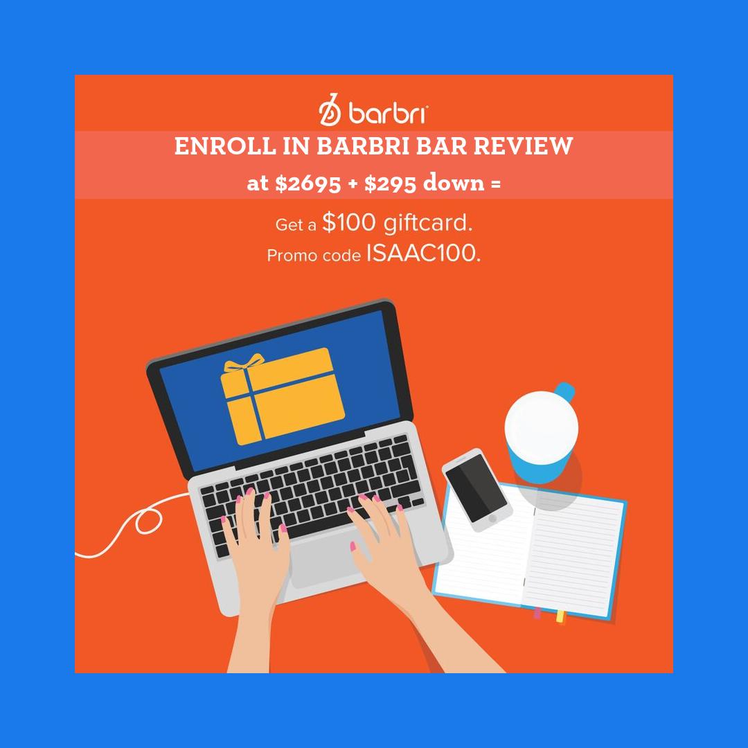 Get $100 by signing up for BARBRI today with promo coded ISAAC100