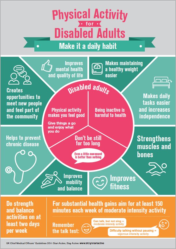 World 1st: Evidence-based & co-produced physical activity infographic for disabled adults. Approved by http://PHE.gov.uk & UK Chief Medical Officers. V. soon in