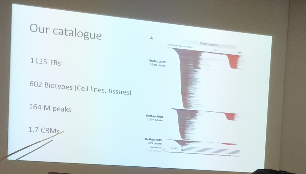 He is presenting the ChIP-seq ReMap database: http://remap.univ-amu.fr/