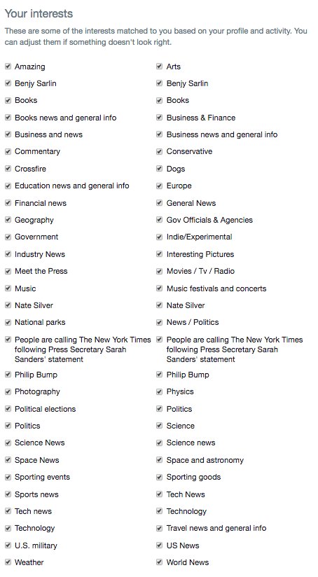 Please go to this page: https://twitter.com/settings/your_twitter_data/twitter_interests … and tell me what Twitter thinks your interests are. Mine apparently include "amazing," "interesting pictures" and "People are calling The New York Times following Press Secretary Sarah Sanders' statement"pic.twitter.com/BI0PoaYSln