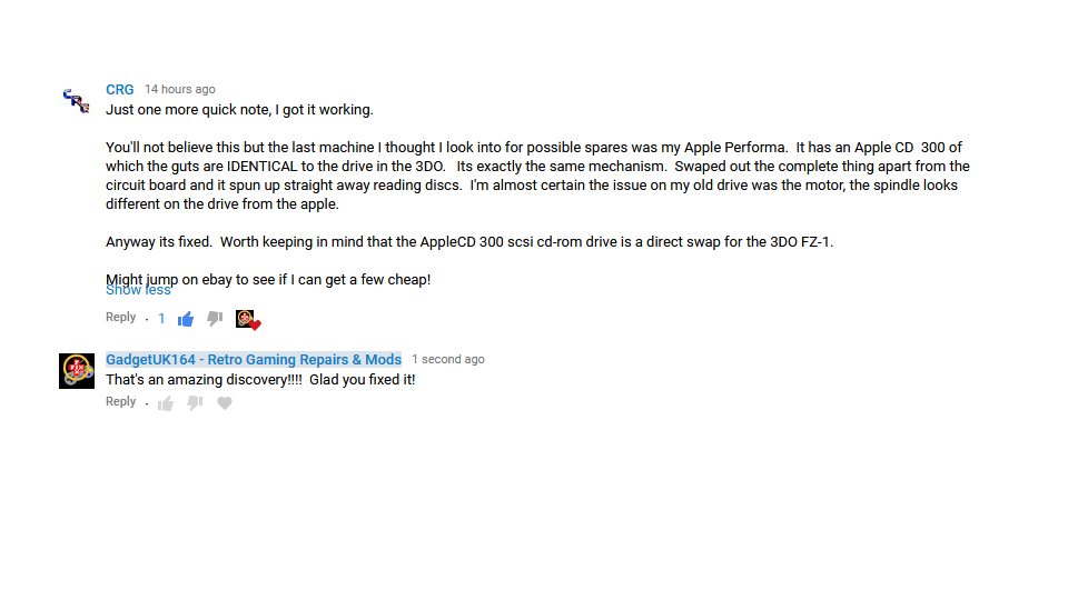 CRG on YouTube made a discovery related to the 3DO! The SCSI CD-ROM drive in the Apple Performa (Apple CD300) is a direct replacement for the 3DO drive!!!pic.twitter.com/EEdjko1j9W