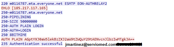 En estos dos días, recopilé 1330 servidores SMTP's que son parte de la botnet de SPAM de EMOTET, en los flujos de red se pueden ver las distintas credenciales de acceso que utiliza la botnet para intentar loguearse :D