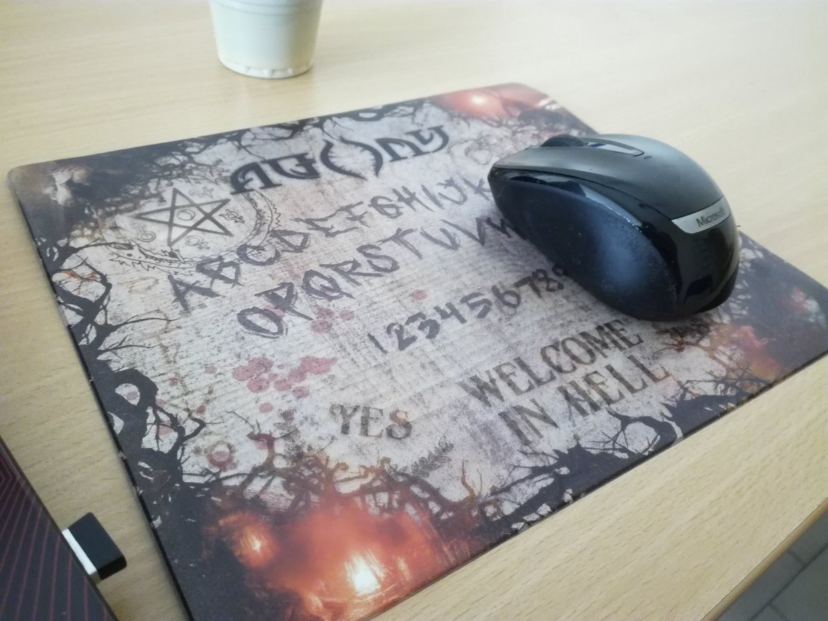 .@AgonyGame a beau être le plus mauvais jeu de 2018 (haut la main), je continue d'utiliser quotidiennement le tapis de souris à son effigie que m'a offert @KochMediaFR @celbeb