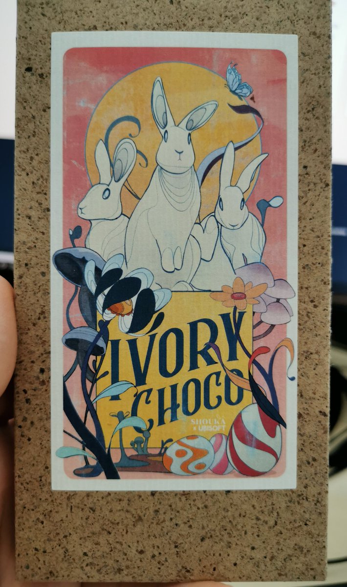 Pour Pâques, à @UbisoftFR Ivory Tower nous avons reçu une tablette de chocolat artisanale avec une superbe illustration, spécialement dessinée pour l'occasion par un des artistes de l'équipe ! J'aime beaucoup l'initiative, je vais garder l'illustration je pense.pic.twitter.com/YwbAyfW92N