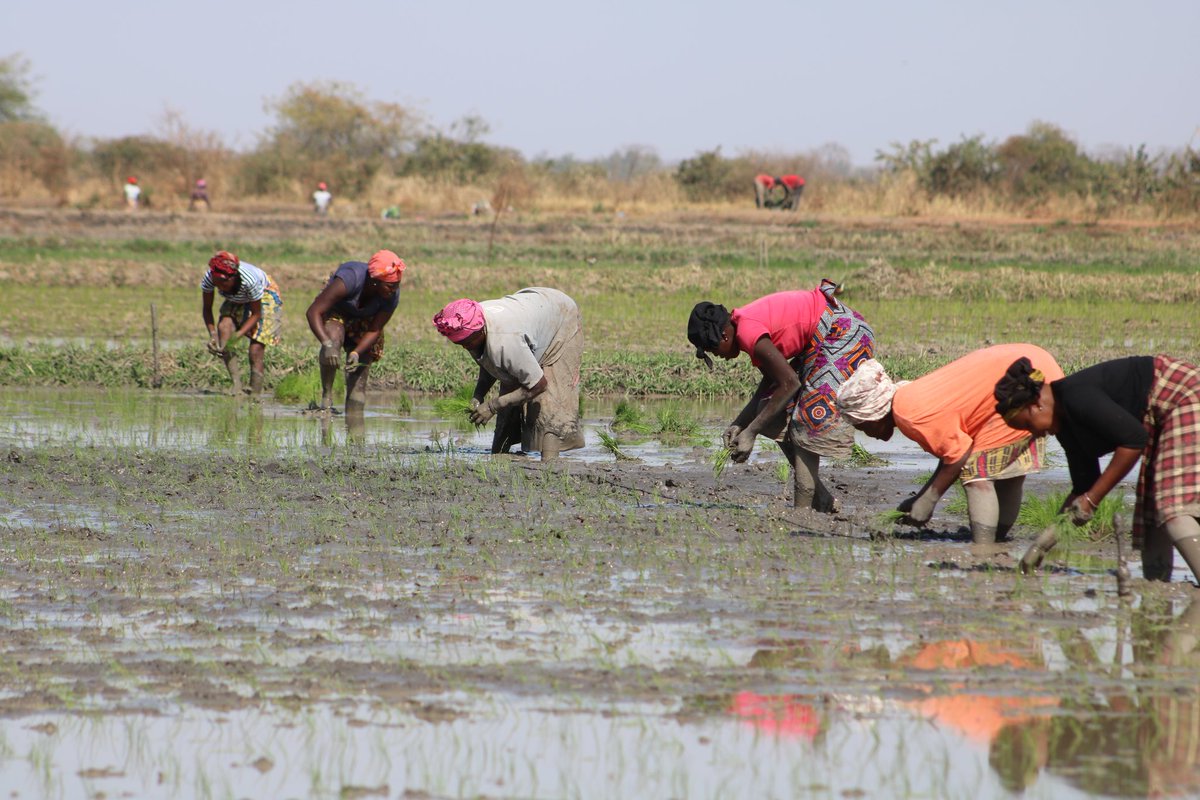 3/7 Next was at Sapu and Pacharr Rice field. At Sapu, the delegation was introduced to NYSS programmes which include training of young Gambians into production etc. The team visited the Pacharr Rice field where we found some women rice farmers transplanting rice under the ...pic.twitter.com/L93bhT7R8Z