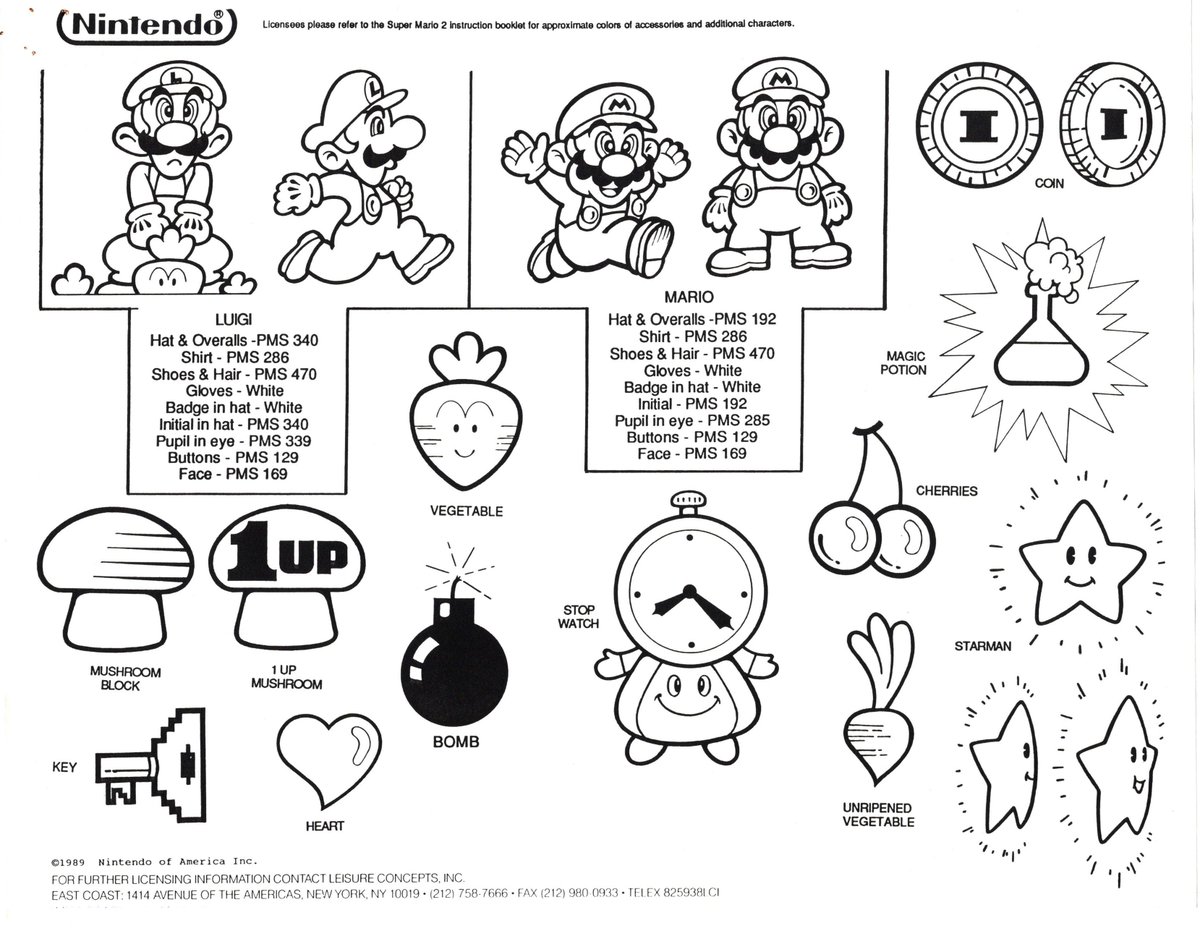 Okay to wrap up, I thought I'd show you what these sheets actually look like. These are photocopies from a licensing art packet from 1989, so unfortunately there's some loss of detail. We have sheets for SMB 1-3 in our library.pic.twitter.com/z5GG640IGg