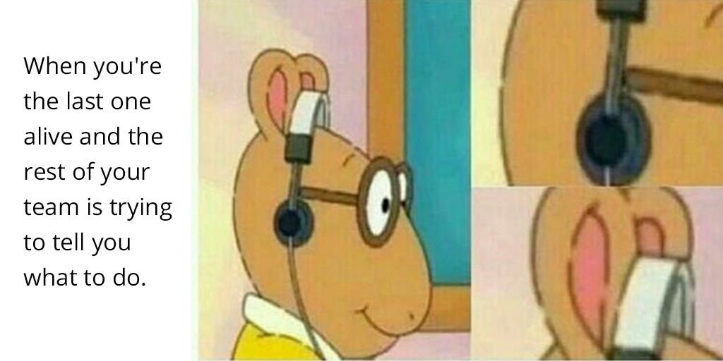 When you're the last one alive and the rest of your team is trying to tell you what to do.