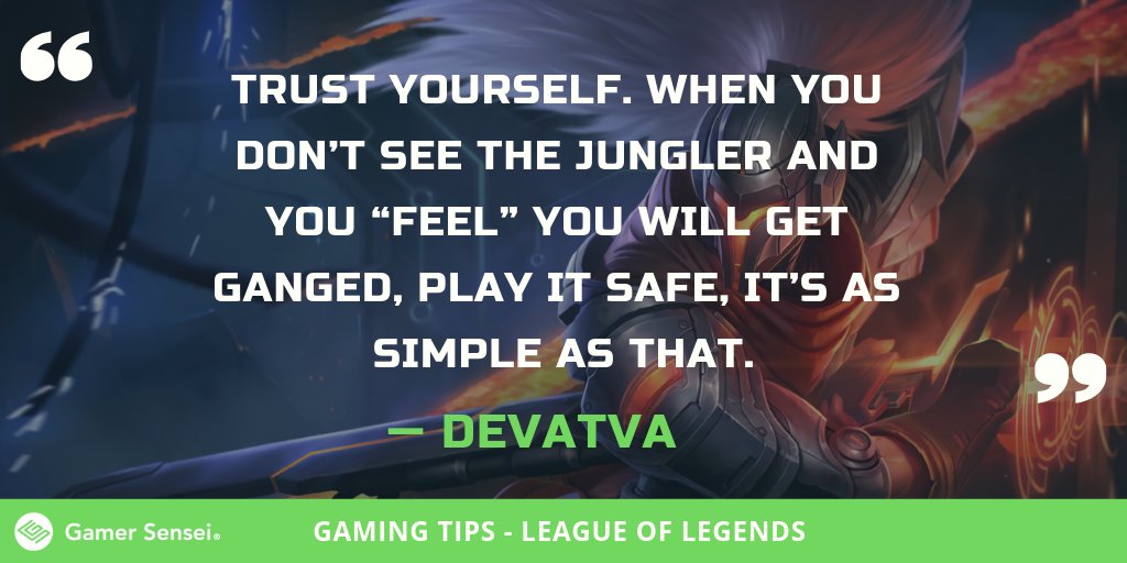 "Trust yourself. When you don’t see the jungler and you “feel” you will get ganged, play it safe, it’s as simple as that."