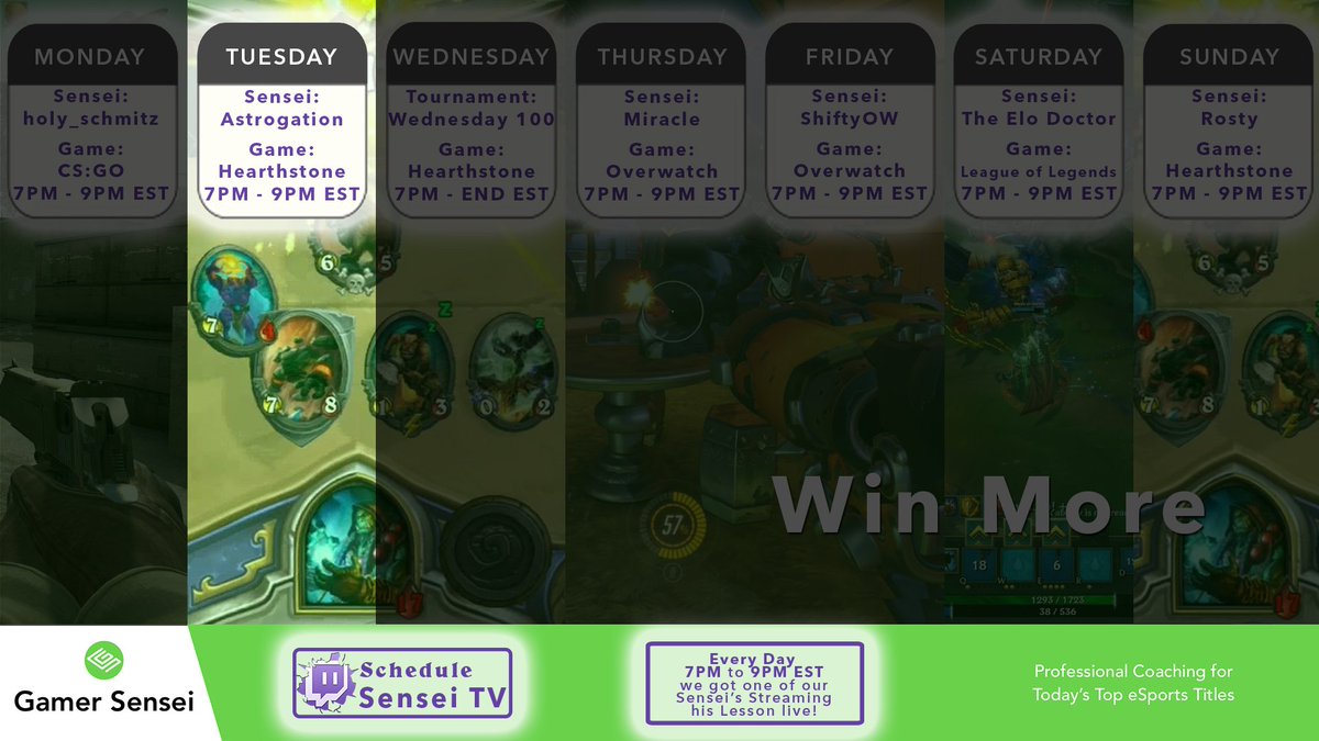 Sensei TV is live with a Hearthstone Coaching session by our coach @AstrogationHS. Come by! https://www.twitch.tv/gamersenseiapp pic.twitter.com/7qSS9U82iC