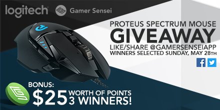 Hey all, it's another Gamer Sensei giveaway! We've got a sick #Logitech mouse & $75 worth of Sensei Points... You ready to #LearnLikeAPro?pic.twitter.com/Fl4PqjDEoR