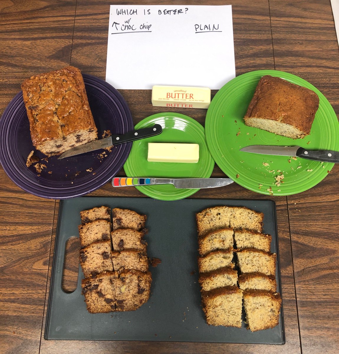 Super important things happening around the office this Friday morning! Battle of the banana breads... what are your thoughts?