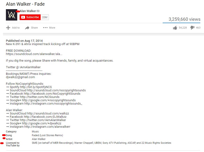 Out of curiosity based off of your original picture I decided to look at the descriptions of the Faded video on @IAmAlanWalker channel and on the @TheLostStories remix video. 1st picture: [NCS Release]. 2nd: Alan Walker 3rd: Lost Stories.pic.twitter.com/Tiufr4bMfN