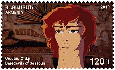 The postage stamp depicts David of Sassoun, the hero of the Armenian cartoon.