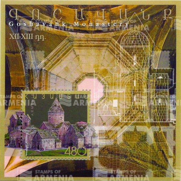 The Souvenir Sheet depicts the Goshavank Monastery, a 12th- or 13th-century Armenian monastery located in the village of Gosh in the Tavush Province of Armenia.
