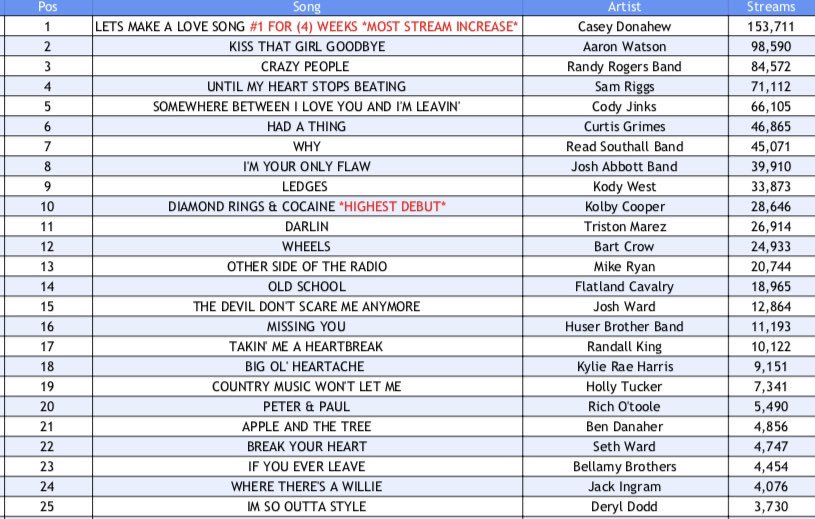 Here are this week's most streamed Texas/Red Dirt singles on Spotify! Full chart here: http://www.texasmusicpickers.com/texas-music-spotify-chart-week-19-4/ …pic.twitter.com/6EcT63U6fT