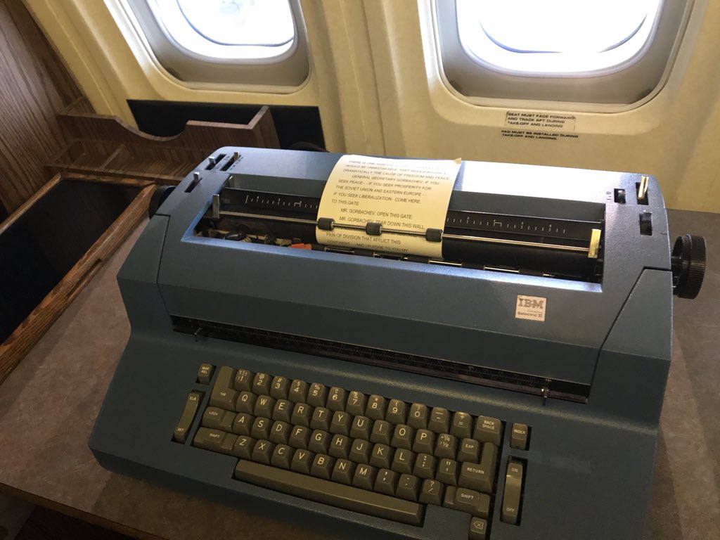 My guide tells me The Gipper’s “tear down this wall” speech was finally settled on this typewriter on board Air Force One. Each time the State Dept amended it to tone down the President’s language, Reagan changed it back.pic.twitter.com/fIqlpb20jw – at Ronald Reagan Presidential Library Treasures of the Vatican Exhibit
