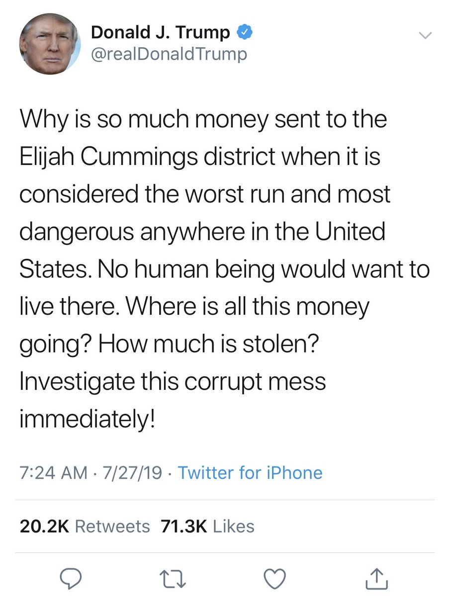 I stand with Elijah Cummings and all the people - of color and otherwise - who live and have lived in the Baltimore district in which I grew up.https://twitter.com/AshaRangappa_/status/1155132833524006913 …