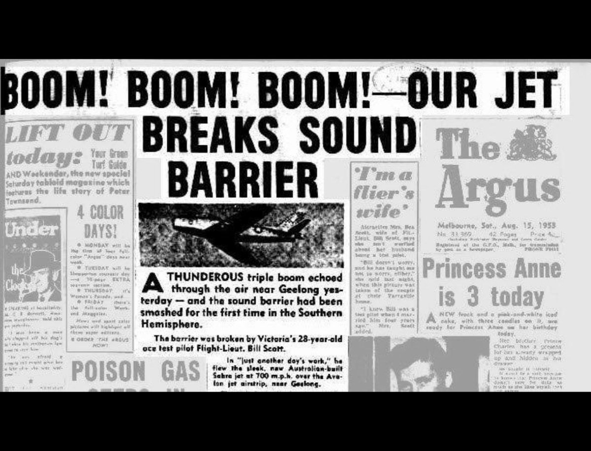 Everything after Chuck's super-sonic flight was based on that flight including how they built the Sabre the X-15 the Concorde & Space Shuttle.. the Aussie's are our ally, so we sent them the plans, etc so the would be up to speed tho by then Chuck stretched it out way past Mach 2