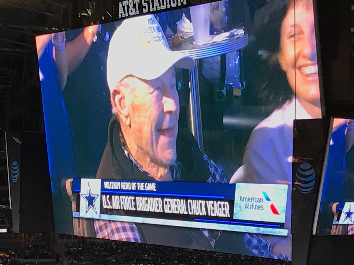 Was at this game and was blown away when I saw you were there. I remember writing a report on you in elementary due to my fascination with jets. Honored to watch the game with you. Thank you for your service.
