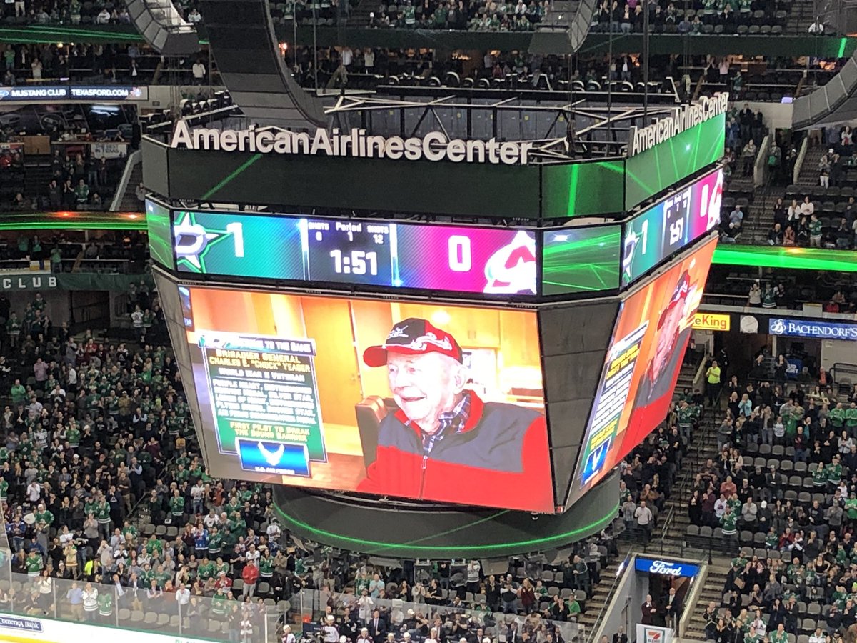 Applauding @GenChuckYeager at the @DallasStars game tonight! Thank you for your service! pic.twitter.com/c3lRCf605g
