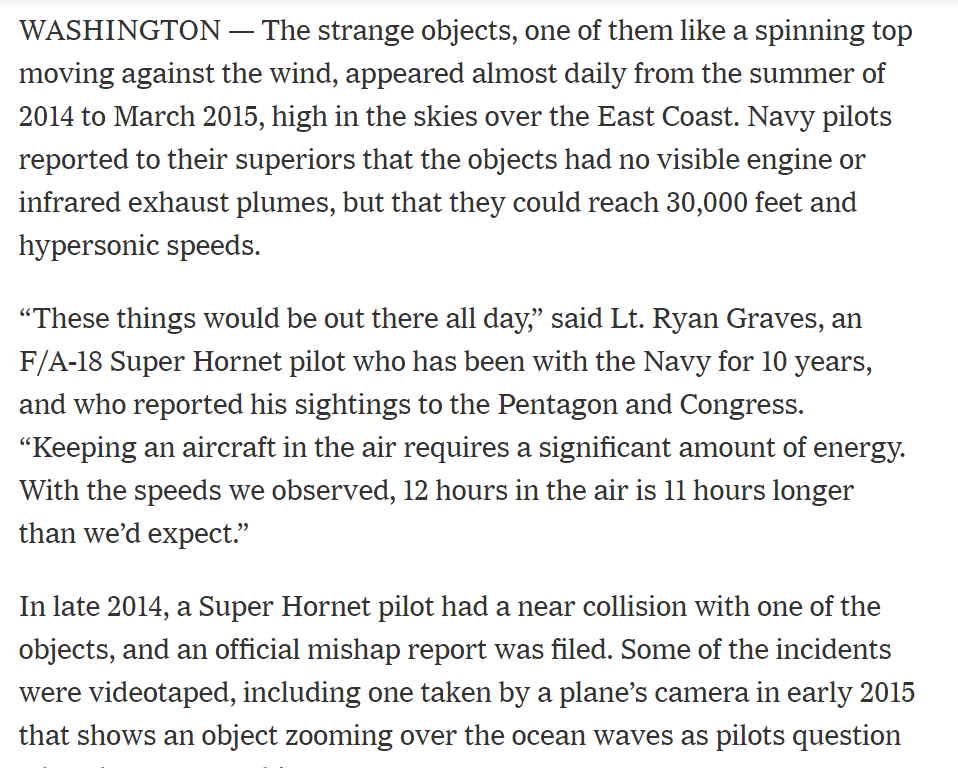 Primero, la nota a la que hace referencia es ésta: puede leerse completa en https://www.nytimes.com/2019/05/26/us/politics/ufo-sightings-navy-pilots.html …pic.twitter.com/BQufomjJow