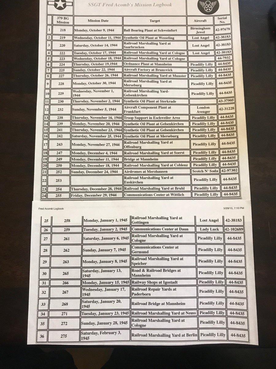 @GenChuckYeager Good morning Q from #pslapshot Did you ever do cover for any of these missions from my late Dads mission logbook? All missions came out of Kimbolton I know from you book you were still there. Thanks from Pat Big fan and still fishing for Golden troutpic.twitter.com/2UkwhQn5Tt