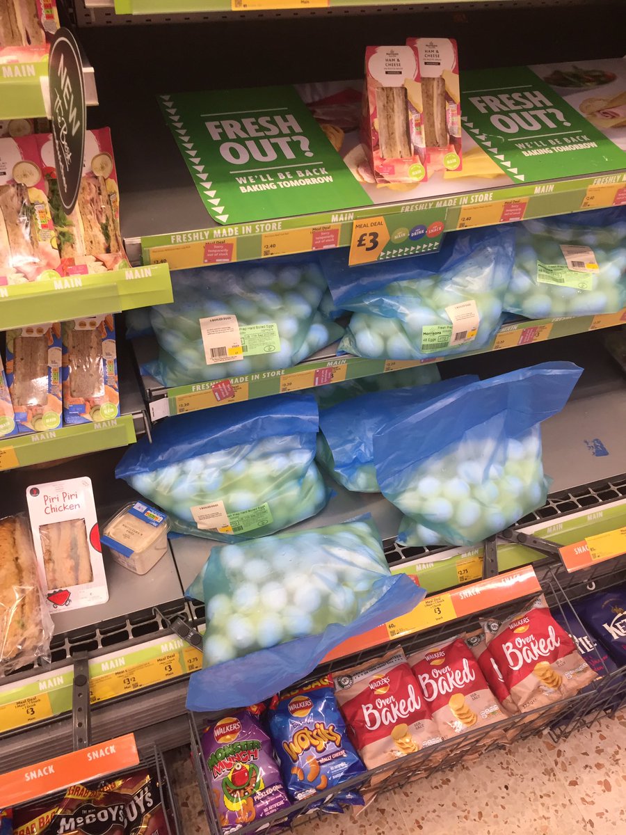 Apparently the answer to why they are doing this BTW is that it's actually an entirely normal way to ship boiled eggs for a salad bar, but sometimes they have too many and rather than waste them they sell them on to customers.