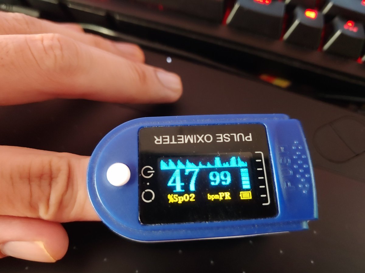 Well looks like it's actually possible to push below 50 SpO2 and not pass out. Wonder what the accuracy of these are at those numbers.pic.twitter.com/kNIiPL6GaD