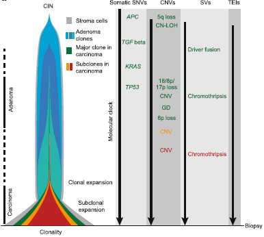 Yang, @ParkLabGenomics and co analyze the timing of mutations in 63 colorectral tumors, identifying key events. Different mechanisms act on different regions. Chromothripsis can occur many times in the same tumor. https://genomebiology.biomedcentral.com/articles/10.1186/s13059-019-1782-4 …pic.twitter.com/hrF0ca7c86