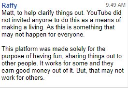 i am really stunned by this. This is unacceptable @TeamYouTube i ask for help, get talked down to then the person just leaves the convo after telling me that creators shouldn't make a living here.pic.twitter.com/2O5c3kIlIo