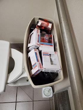 As discovered in a local pharmacy bathroom: Christmas lights.
