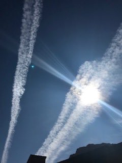 Since early this morning (and the last few days) there has been exceptional activity in the skies over Ireland. I travelled to Dublin yesterday and contrails filled the sky all along the route. What could have been a blue sky day today is yet another white out.