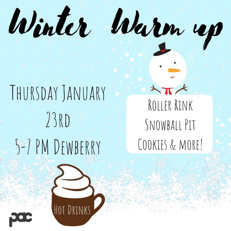 Winter Warm Up is today! Come to Dewberry for some awesome activities and to celebrate the beginning of the semester! Bring some friends or make some new ones in Dewberry from 5-7pm.pic.twitter.com/nrn7UFAdEd