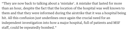 #MSF airstrike" http://www.theguardian.com/us-news/2015/oct/06/doctors-without-borders-airstrike-afghanistan-us-account-changes-again …#independentinvestigation#Kunduz6 replies 109 retweets 32 likes -