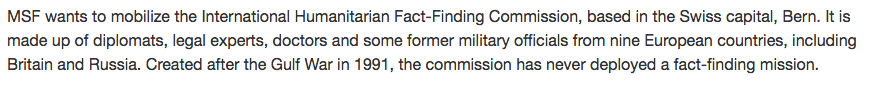 #MSF brilliantly wants to use the International Humanitarian Fact-Finding Commission for an#independentinvestigationpic.twitter.com/wRBdeu20I8