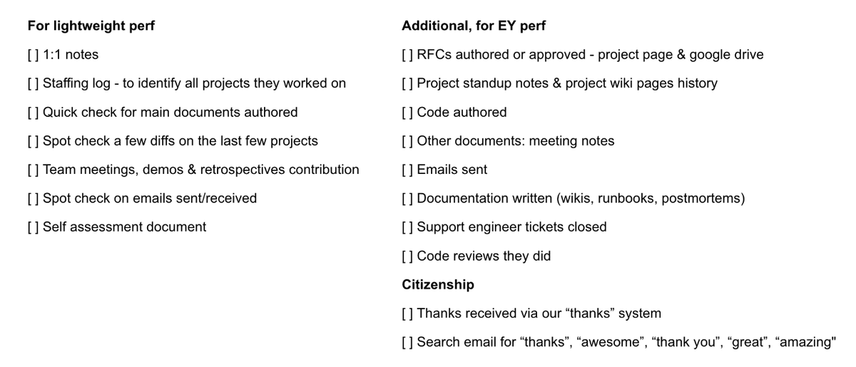 So back to how I do them. First: preparation. This starts months before, by building up a relationship and setting realistic expectations, both sides. Then, weeks before the review, I do my homework, especially with people I don't have as much context on. (5/10)pic.twitter.com/iC7kZdeRW6