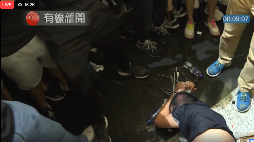 Now these "peaceful protesters" also holding the negotiator...pic.twitter.com/Oku78OYRNZ